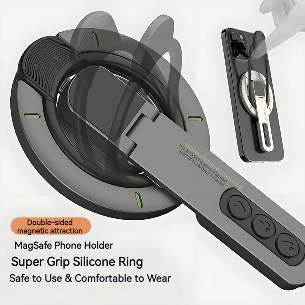 بكل سهولة! الحامل يدعم تقنية MagSafe للآيفون مباشرة، ولأي جوال أندرويد آخر نوفر لك حلقة مغناطيسية إضافية تلصقها خلف الجوال ويصير جاهزاً للاستخدام الفوري مع الحامل الذكي.