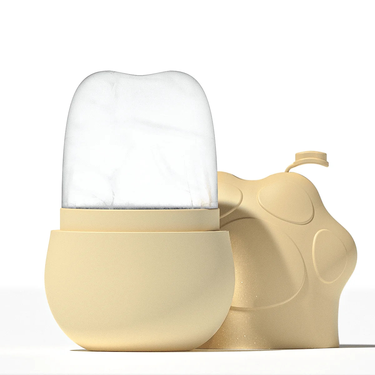 بالتأكيد! السيليكون الطبي المستخدم في القالب آمن تماماً، ولكن ننصح بلفه بقطعة قماش رقيقة أو استخدامه بحركات سريعة لتجنب تهيج البشرة الحساسة من البرودة المباشرة.